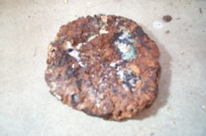 12月3日 シイタケ栽培ブロック。白・青っぽく見える部分がカビ。 |