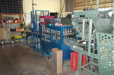 オガクズ培地をビンに詰める機械です。 ここでビンに培地が詰められます。 |