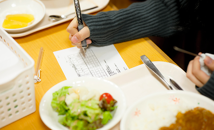 栄養教諭は学校給食の管理や食に関する指導を担当。児童生徒への個別的指導・助言の他、家庭への助言・地域支援や働きかけなど多彩な活躍が期待されています。