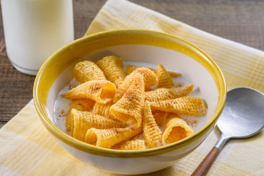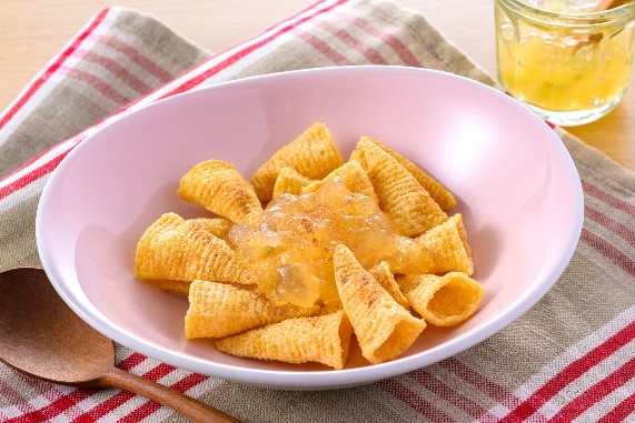 学生たちは「とんがりコーン」<ロイヤルミルクティー味>の楽しみ方として、牛乳をかけて食べる “とんがりコーンフレーク” アレンジレシピの開発にも協力しました。学生のアイデアが詰まった “とんがりコーンフレーク” のアレンジレシピは、12月1日より「とんがりコーン」ブランドサイトでも紹介されます。
