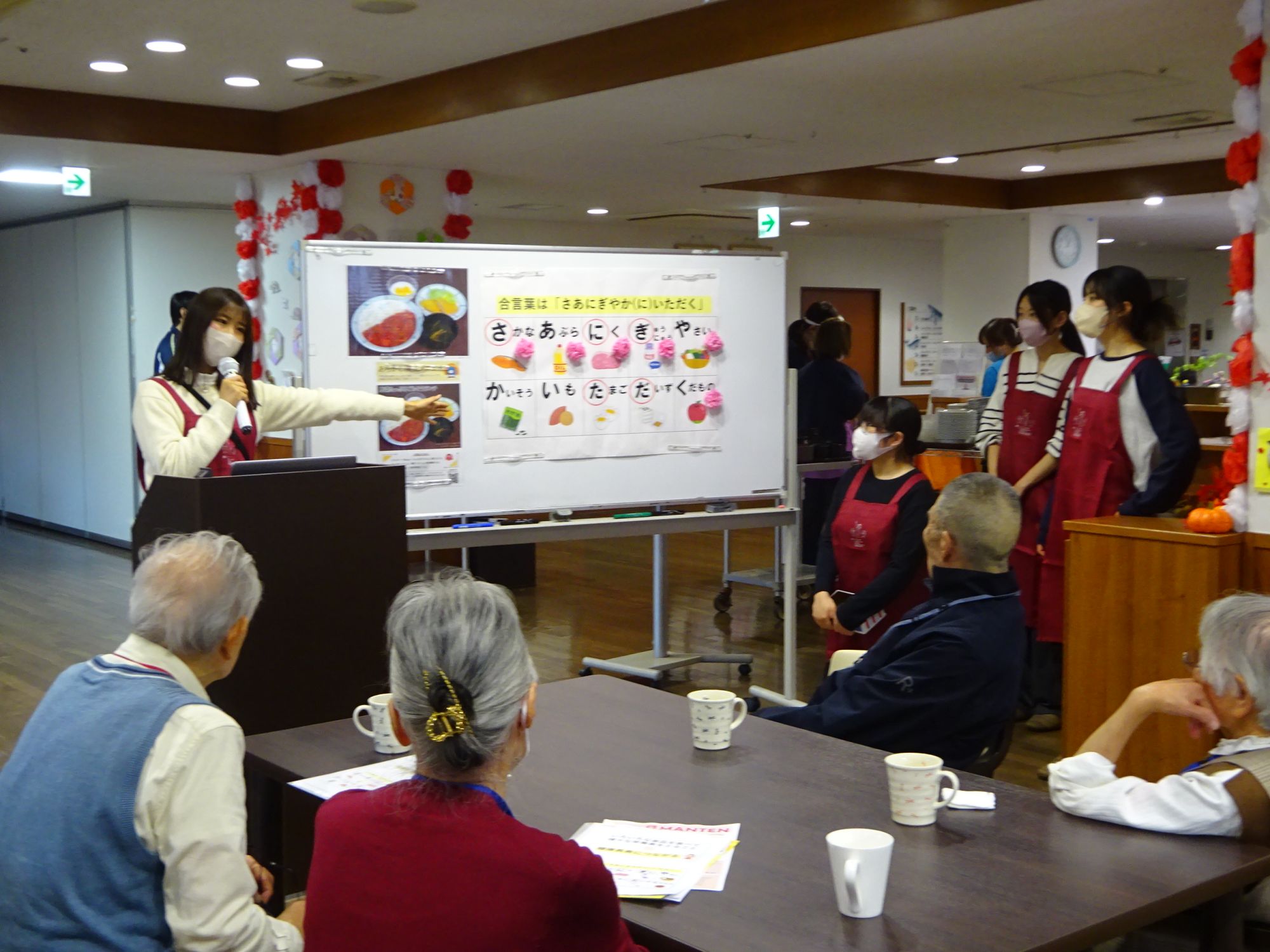 学生たちも、メニュー開発の実践・講話の立案、教材作成、準備(PDCAサイクルの実践)・講話によるコミュニケーション・地域高齢者の食環境の理解など、多くの学びを得ることができ、学生からは「相手に伝わる話し方の難しさを知った」「食べやすいメニューの工夫の大切さを実感した」などの感想が出ており、多くの学びを得ることができたようです。