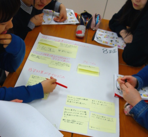 朝1限、教室の準備をしようと、いつもより早く20分も前に教室へ行った時、思わず目をみはりました。すでにかなりの学生さんがいて、グループワークができるように机がきちんと配置換えされていたからです。