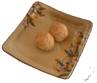 | < 作り方> @浮き粉に熱湯を一気に入れて箸で混ぜ、指で触れられる熱さになるまで、そのまま蒸らします。 A台の上に取り出し、こねてひとつにまとめ、ラップで包み室温でねかせます。 B白玉粉と水を混ぜ合わせ、ラードも加え、ひと塊りになるまでこねます。 CA)に砂糖を少しずつ加え混ぜ、Bを数回に分けて混ぜ、ラップで包み約20分ねかせます。 D)あんは10等分にし、丸めます。 ECを10等分にしてのばし、Dを包んで、みがきゴマをまぶし、手に軽く水をつけてもう一度丸め直します。 F低温の油からゆっくり揚げ、浮いてくれば温度を上げて色よく揚げます。 |