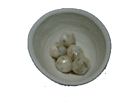 材料(4人分) 白玉粉・・・・・・・100g いりごま(黒)、練りごま(黒)・・・・・・各大さじ2 黒みつ・・・・・・・・・・・・・・・大さじ6