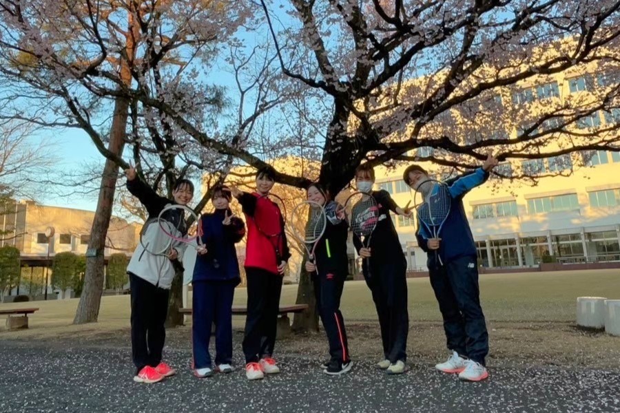 校内にあるテニスコートで活動しています。関東理工科大学硬式庭球連盟において4部に所属し、公式戦に向け、自分達で練習メニューを考えながら練習しています。
