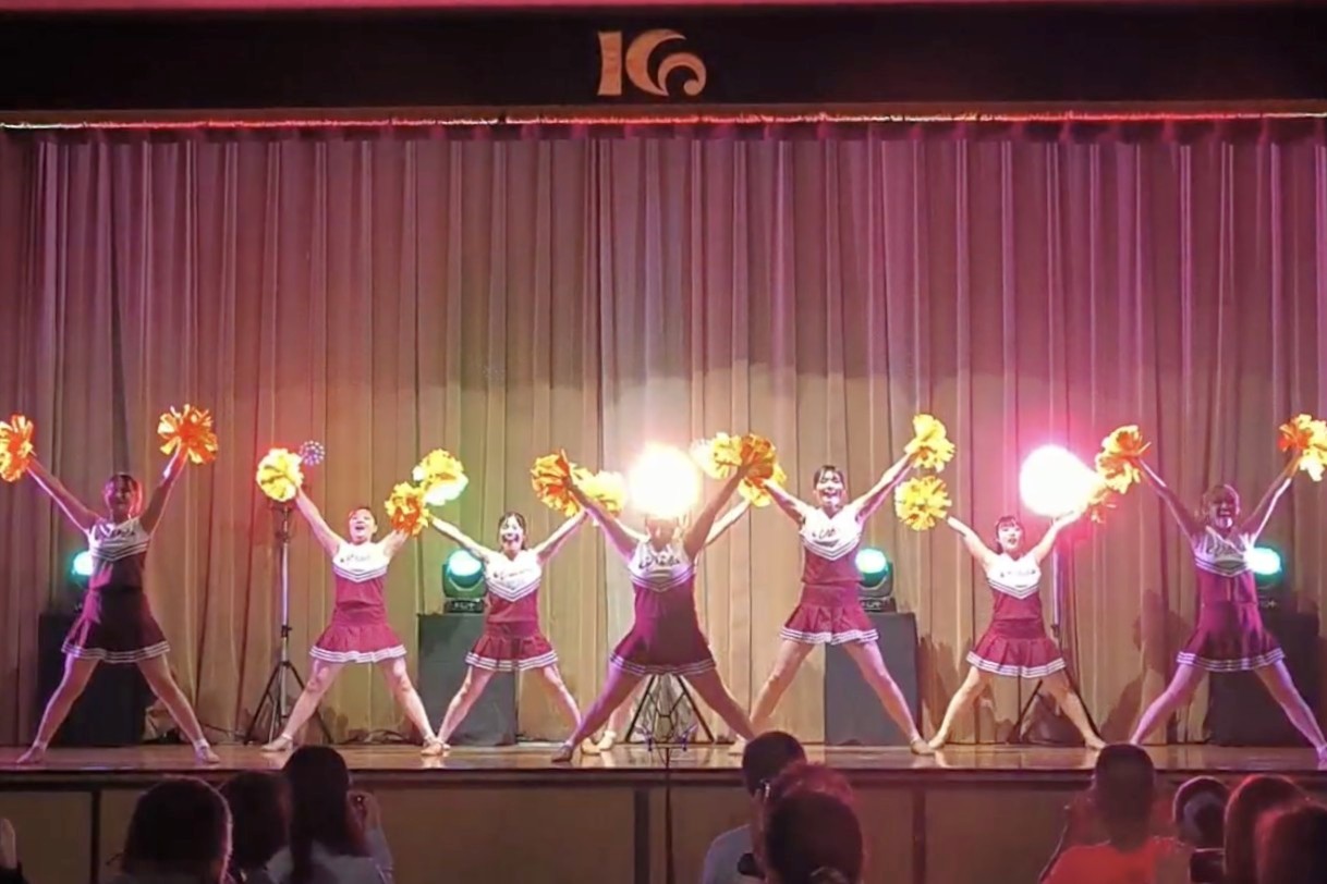 手にポンポンを持ちターンやジャンプなどのテクニックやアームモーションにより構成された振り付けを踊るチームスポーツです。見る人を笑顔にし元気づけることができるといった魅力があります!