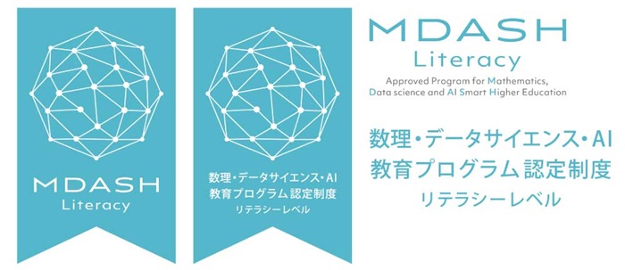 本プログラムは、文部科学省が行う「数理・データサイエンス・AI教育プログラム(リテラシーレベル)」に認定されました。(認定の有効期限:2030年3月31日まで。)