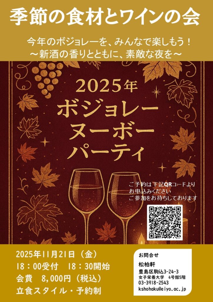 今回は、11月20日(木)に解禁したボジョレーヌーボーを楽しむ会を企画しております。