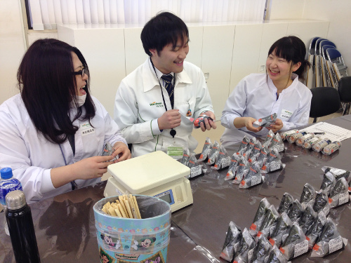 私が働いている職場は、おにぎり・お弁当・サンドイッチ・パスタ・和菓子等様々なチームに分かれています。私の所属しているおにぎり・お寿司チームは半数以上が女性のチームです。また、商品を作り上げるには、皆で協力し合い一つの商品を完成させていきます。日々行われる商品検討の場では、先輩・後輩関係なく率直な意見を求められます。時には自分の作ったものに関して、チームを超えて相談したり・実際何日も工場へ行って検証をしたりと、皆の商品に対する熱意は中途半端なものではありません。