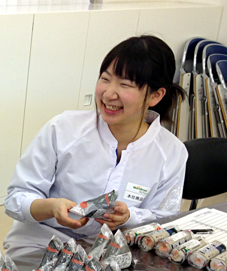 2013年3月に女子栄養大学 実践栄養学科卒業後、新入社員としてわらべや日洋株式会社へ入社しました。新入社員研修を経て、商品開発の部署へ配属し、1年間は事務の業務を行い、商品を発売する為に必要な書類作成や商品の原材料表示について学びました。2年目からはおにぎりチームに所属し、手巻おにぎり 辛子明太子や雑穀おむすび、恵方巻等の開発に携わり、現在に至ります。