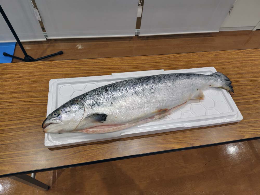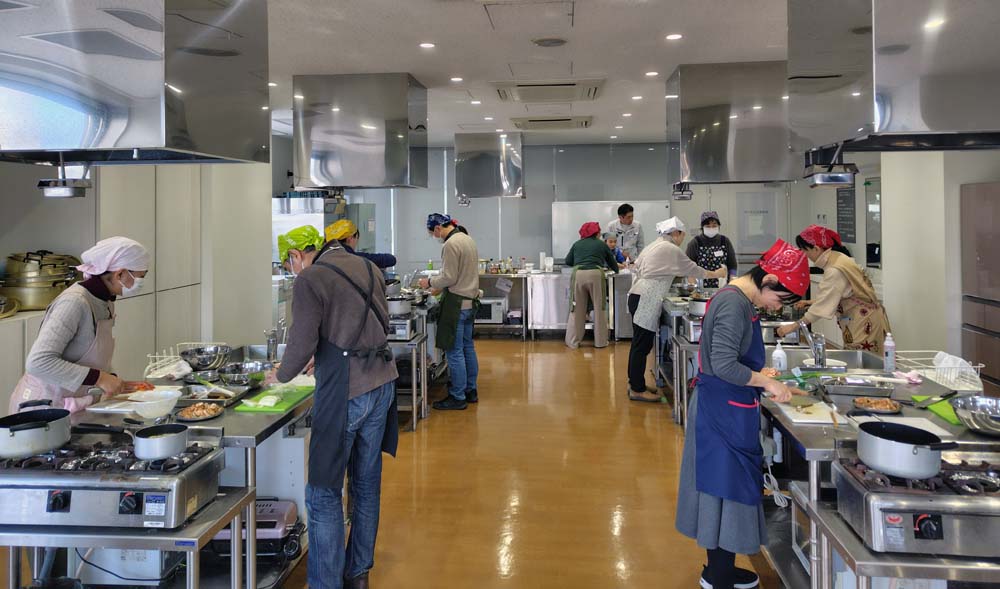 研修会では、宮城県の鮭の現状や銀鮭について理解を深めた後、宮城の郷土料理である鮭のはらこ飯とあら汁、柿なますの由来などに聞いた後、料理づくりをし、みんなで楽しく食べました。