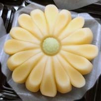 完成した〈山茶花〉と〈残菊〉はそれぞれ2個ずつ。上品な甘さと美しい色合いに仕上がり、参加者は1つをお茶とともに味わい、残りをお土産として持ち帰りました。
