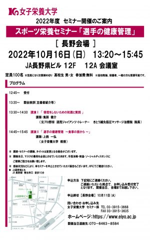10月16日(日)「スポーツ栄養セミナー」長野会場開催