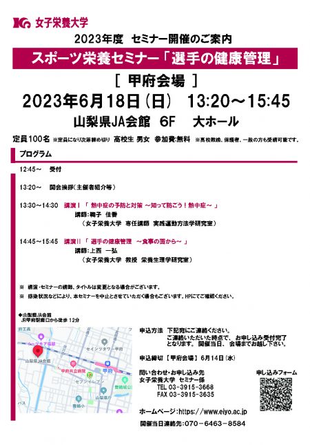 6月18日(日)「スポーツ栄養セミナー」甲府会場開催
