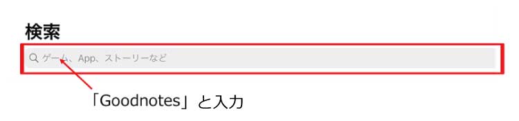 ③画面上部に現れる検索ボックスに「Goodnotes」と入力