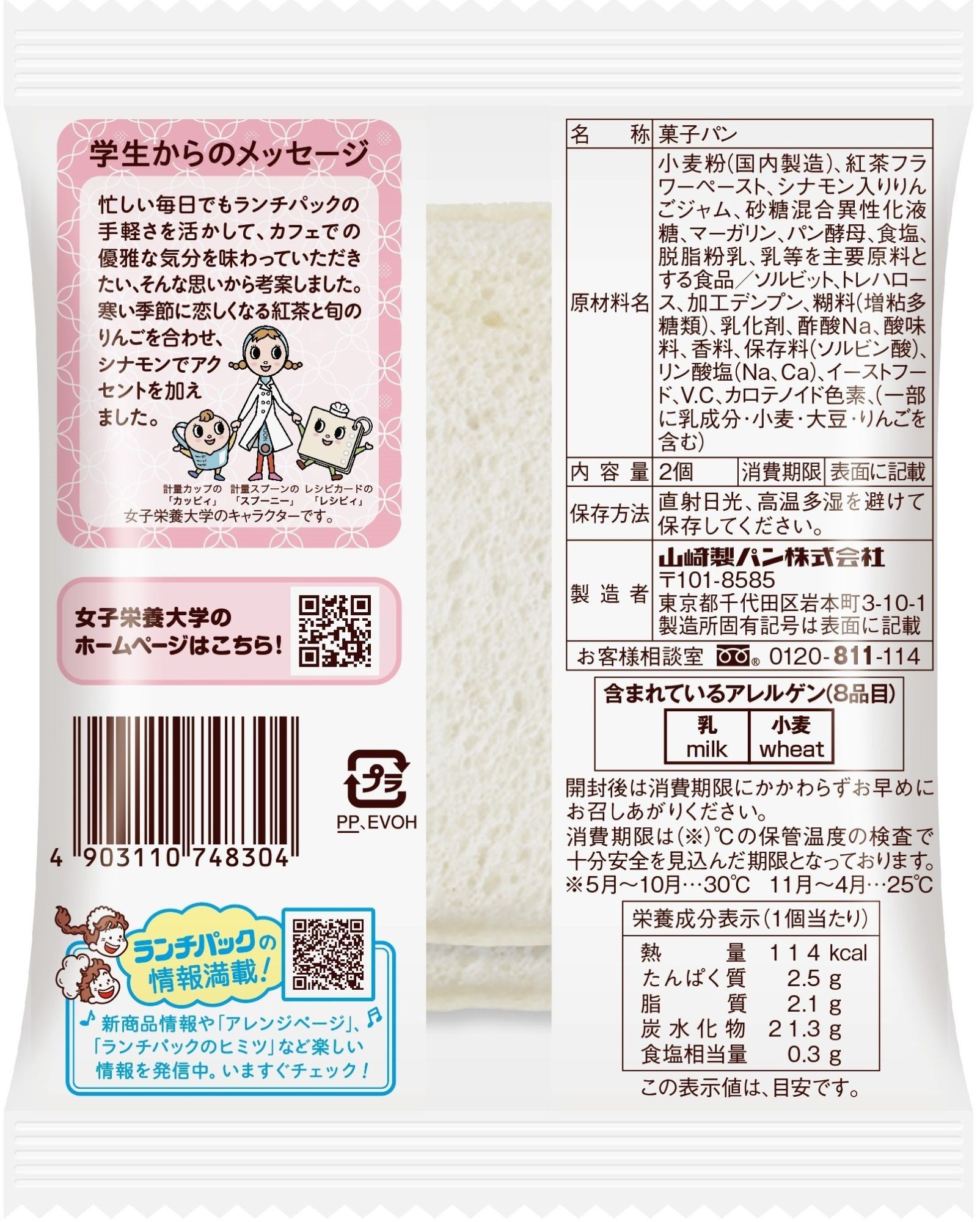 実践栄養学科 4年生が山崎製パン株式会社と「ランチパック」を共同企画 新製品「シナモンアップルティー」が 1月 1日(木 )より新発売
