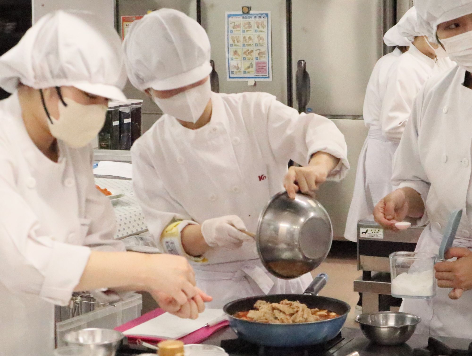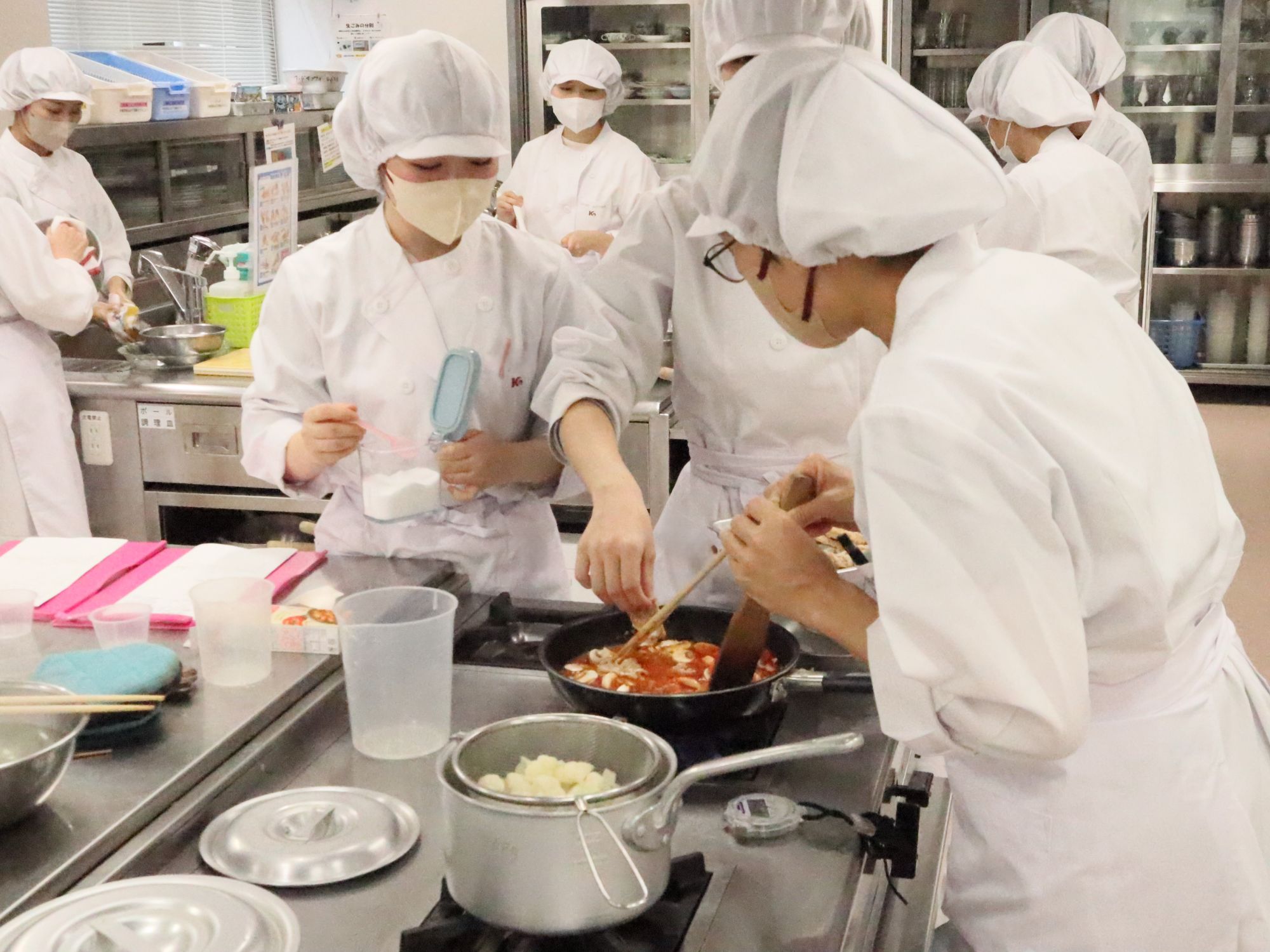 2年生の後期となると、学生たちも手際よく調理実習に臨んでいました。