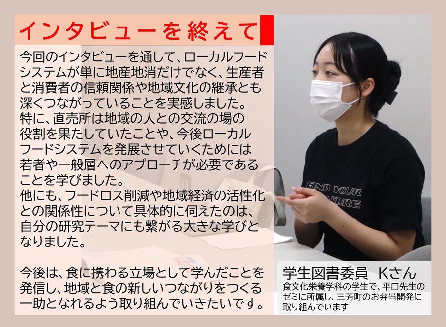 「ローカルフードシステム」について、学生図書委員が、平口嘉典先生にお話を伺いました。